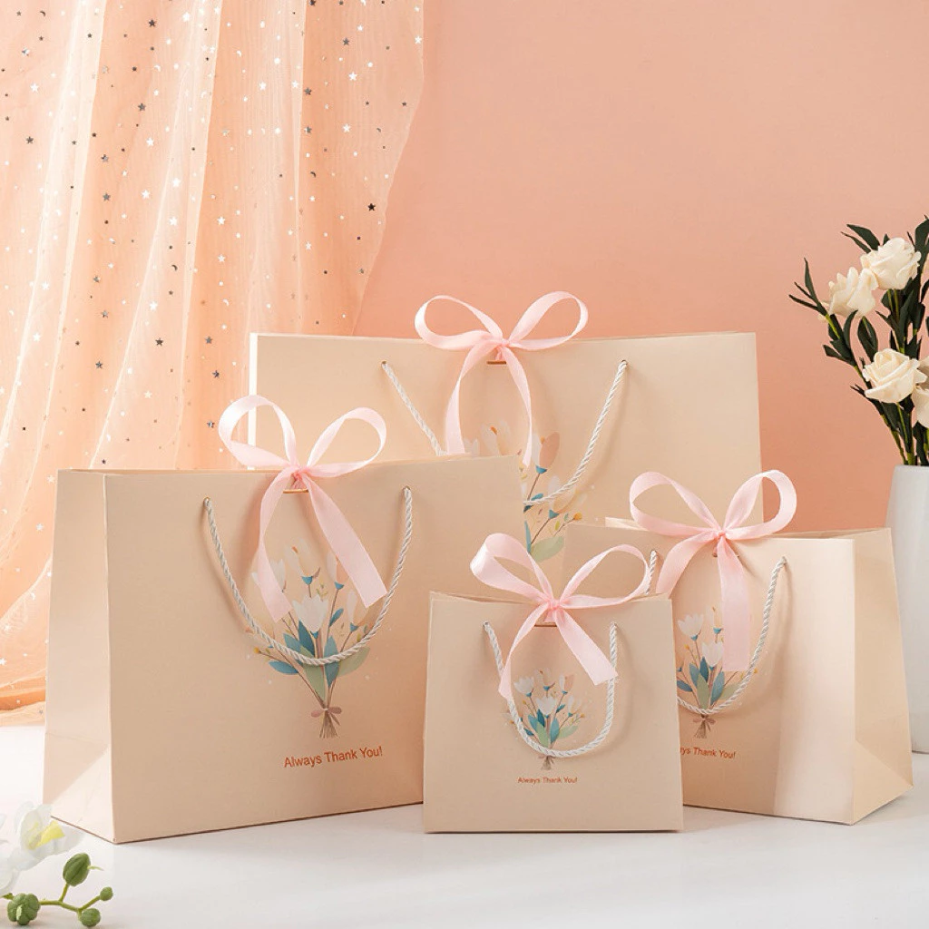 Trong số các lựa chọn hiện có trên thị trường, Túi quà tặng thiết kế bông hoa sang trọng thanh lịch của Kami Store là một ví dụ điển hình. Với mức giá 16799 VND, hiện đang được giảm còn 13999 VND, túi này sử dụng chất liệu cao cấp, màu sắc pastel nhẹ nhàng, cùng các chi tiết dải ruy băng satin và nút bông hoa tinh tế. Thiết kế mở nhẹ, có thể tái sử dụng, giúp người nhận cảm nhận được sự quan tâm mà không bị áp lực “đắt đỏ”. Sản phẩm này phù hợp cho các dịp như 8/3, 20/10 hay Tết Trung Thu, vừa thể hiện sang trọng vừa giữ được tính thực tế.
