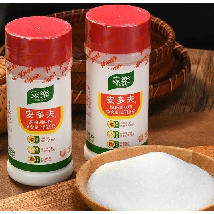 - Đóng gói tiện lợi – các thương hiệu như “Gia vị bột đu đủ làm mềm thịt hộp 453gr” đang giới thiệu bao bì thân thiện môi trường, vừa giữ được độ tươi mới, vừa giúp người tiêu dùng dễ dàng đo lường.