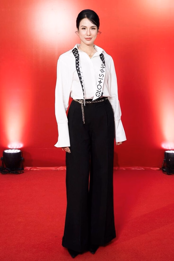 Điểm nhấn trong bộ trang phục của Diệp Lâm Anh đến từ chiếc thắt lưng dây xích của thương hiệu Chanel, có giá khoảng hơn 20 triệu đồng. Bên cạnh đó, cô chọn khăn lụa Monogram Infinity BB với họa tiết kinh điển của Louis Vuitton, giúp tôn lên vẻ tinh tế cho áo sơ mi trắng. Sản phẩm này có giá 7,7 triệu đồng.