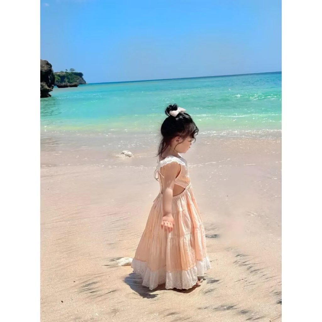 Ví dụ thực tế: Maxi đi biển hở lưng cho bé gái màu hồng