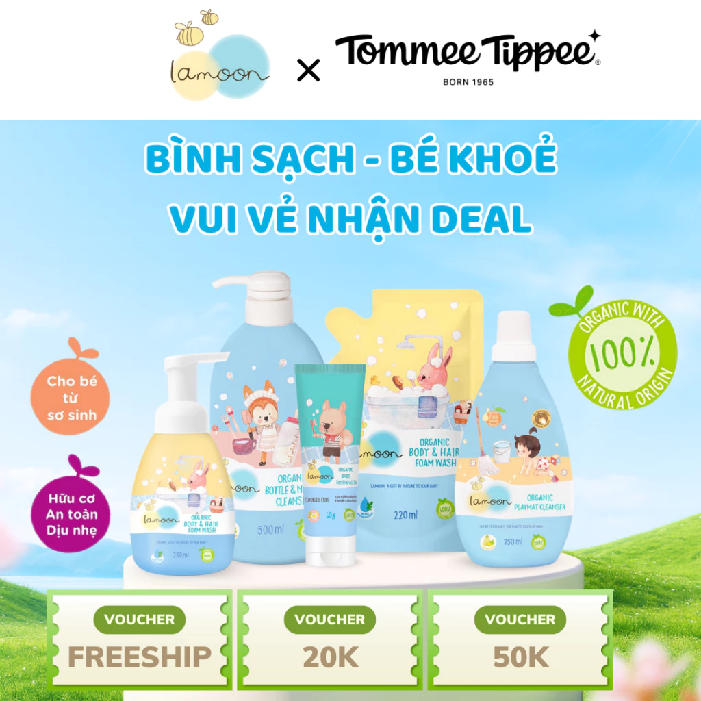 🔥 [QUÀ TẶNG KHÔNG BÁN] E-Voucher từ Lamoon dành tặng phụ huynh & bé nhà Tommee Tippee đang giảm giá!