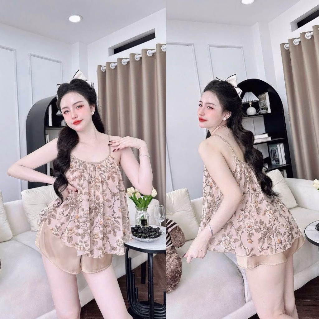 🔥 (DN09) Đồ Ngủ Nữ Bigsize, Đồ Ngủ Sexy lụa Latin cao cấp mềm mại xinh xắn chiffon de thuong < 70KG đang giảm giá!