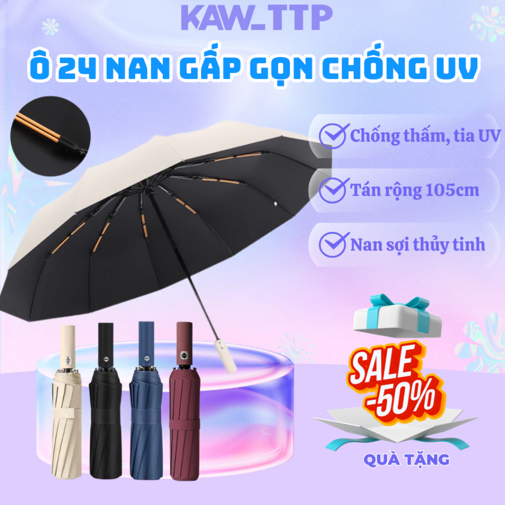 🔥 Ô Dù 24 Nan Gấp Gọn KAW Tay Cầm Tự Động Đóng Mở Lớp Phủ Chống Nước Chống Tia UV, Nhỏ Gọn Tiện Lợi đang giảm giá!