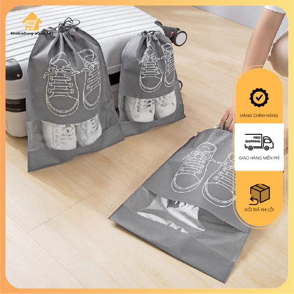 Giới thiệu Túi vải đa năng đựng giày dép mang đi du lịch chống bụi có dây rút tiện lợi size lớn 32x42cm