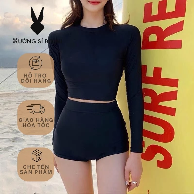 🔥 [BIKINI LOẠI ĐẸP] Đồ bơi nữ bikini đi biển nữ 2 mảnh lưng cao áo tay dài đen cá tính đang giảm giá!