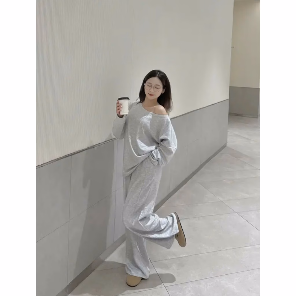 🔥 Set Áo Lệch Vai Kèm Quần Ống Suông, Set Trễ Vai Chất Tăm Lông Thỏ Mềm Mại đang giảm giá!