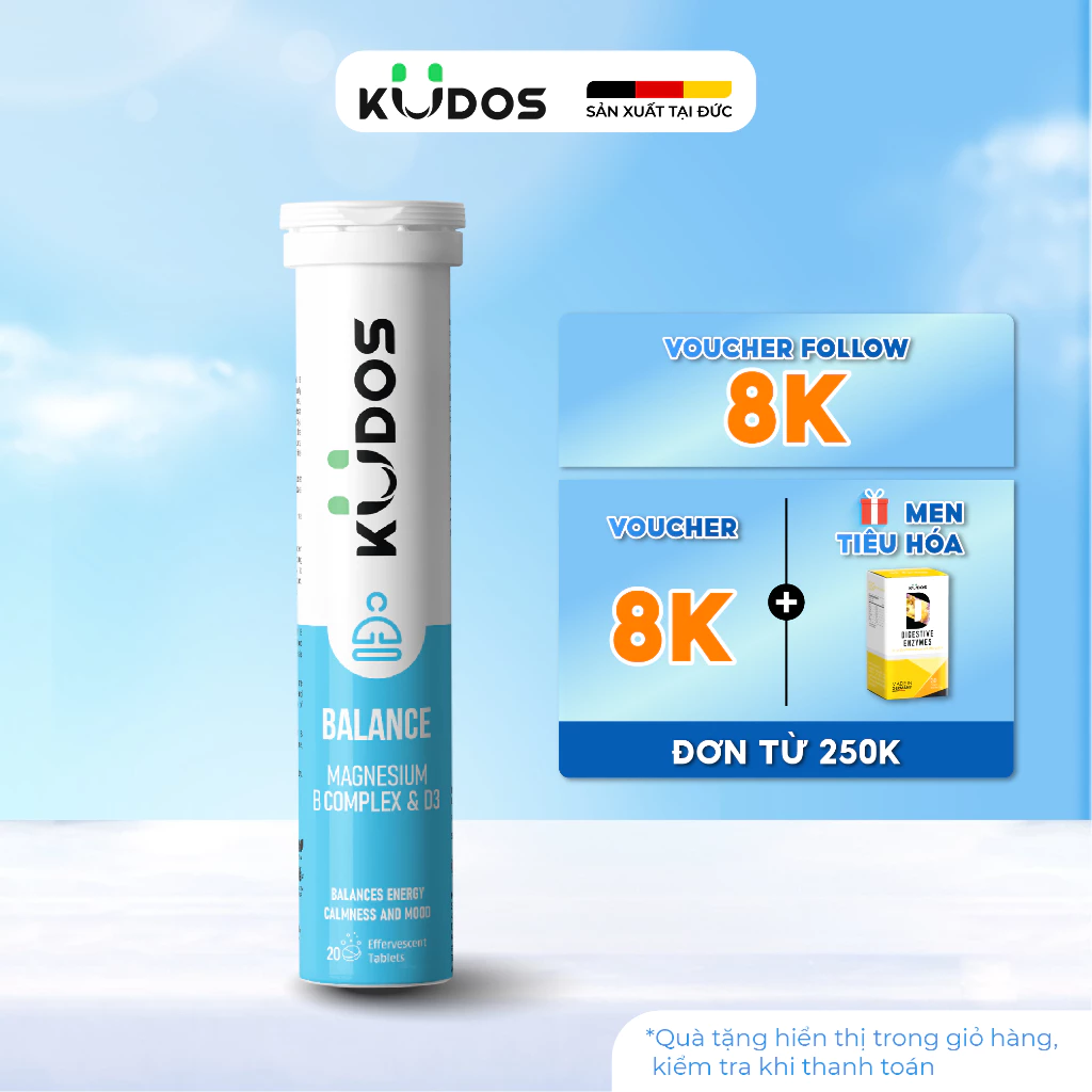 🔥 Thực phẩm bảo vệ sức khỏe KUDOS BALANCE MAGNESIUM WITH B VITAMIN COMPLEX & D3 (20 viên/tuýp) đang giảm giá!