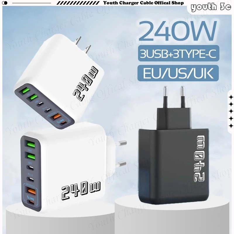 🔥 Tổng cộng 240W Bộ sạc siêu nhanh 6 cổng USB + Type C Bộ sạc điện thoại di động EU / US / UK Plug Bộ sạc tường thông minh Tương thích rộng rãi đang giảm giá!