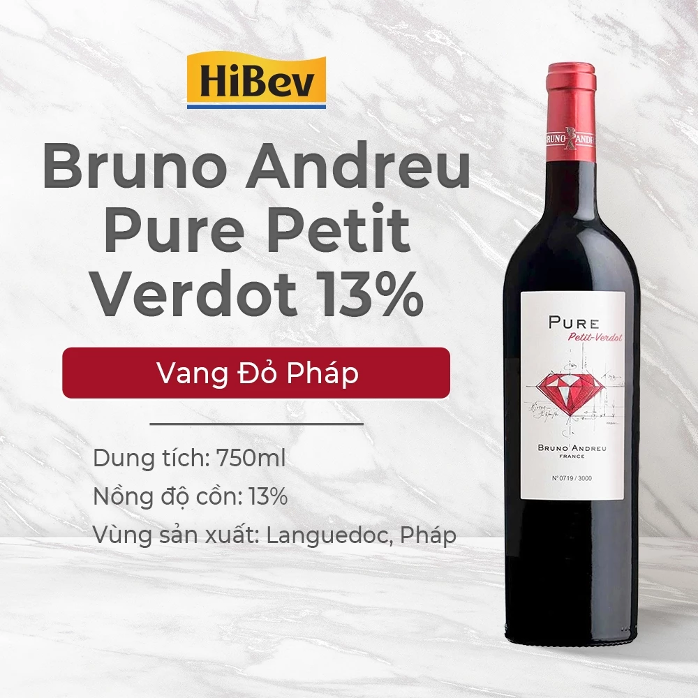 🔥 [HiBev] Rượu Vang Đỏ Pháp Bruno Andreu Pure Petit Verdot 13% – 750ML đang giảm giá!