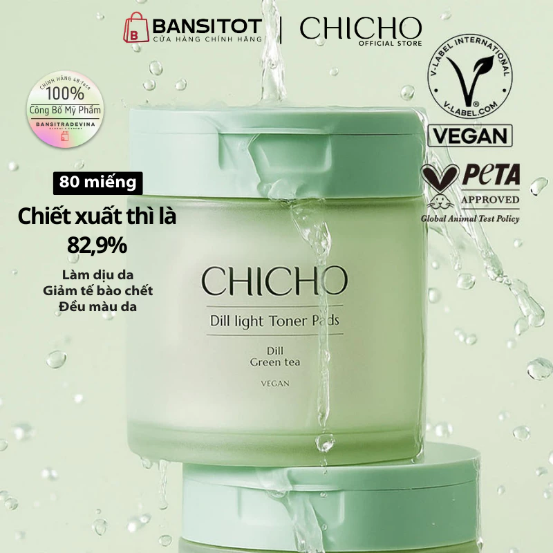 🔥 Toner Pad CHICHO Dill Light 80 miếng làm dịu da, cấp ẩm, tẩy tế bào chết BHA, Nanolipo Barrier 220g đang giảm giá!
