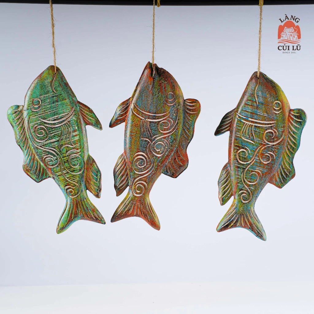 - Cá gỗ treo hoa văn: Mang tính nghệ thuật và ý nghĩa phong thủy.